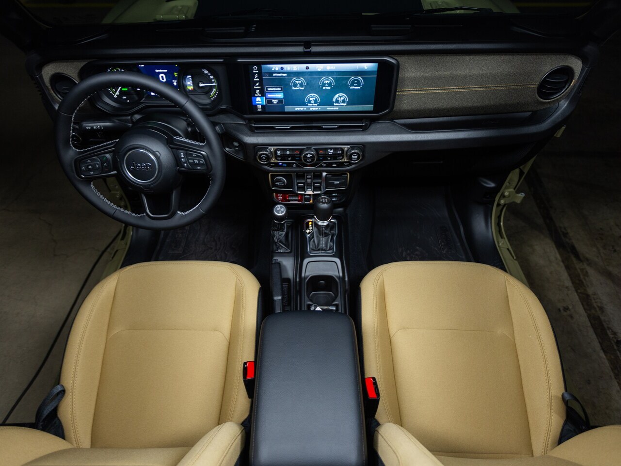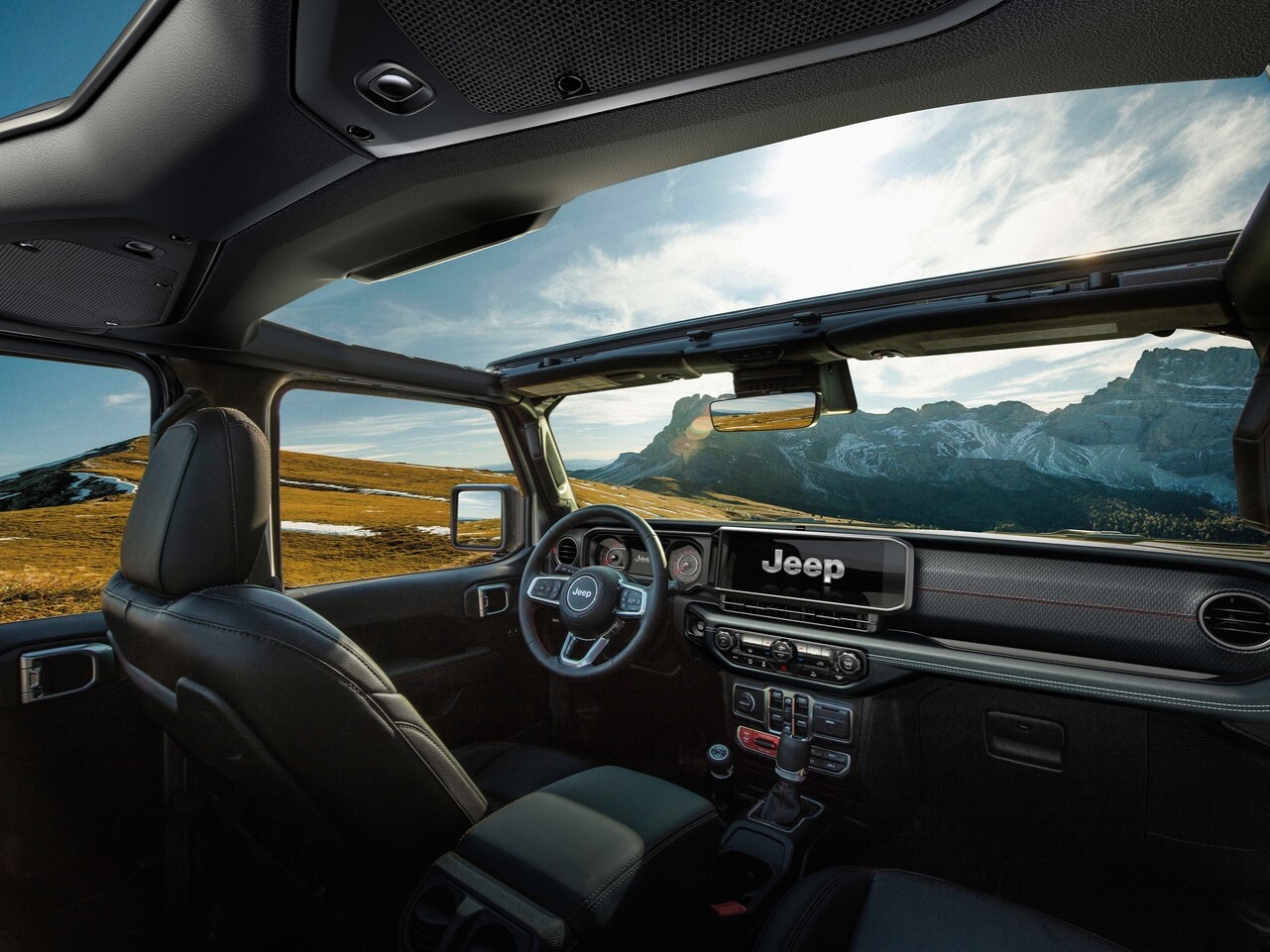 Climb inside the new Jeep® Wrangler and discover a cabin that balances rugged functionality with modern comfort. The interior features durable materials designed to withstand the elements while providing a comfortable environment for daily driving. Seating options include cloth seats, McKinley trimmed seats, and premium Nappa leather upholstery. A six-way manually adjustable seat is standard, while available 12-way power-adjustable seats with memory function enhance comfort on longer journeys.